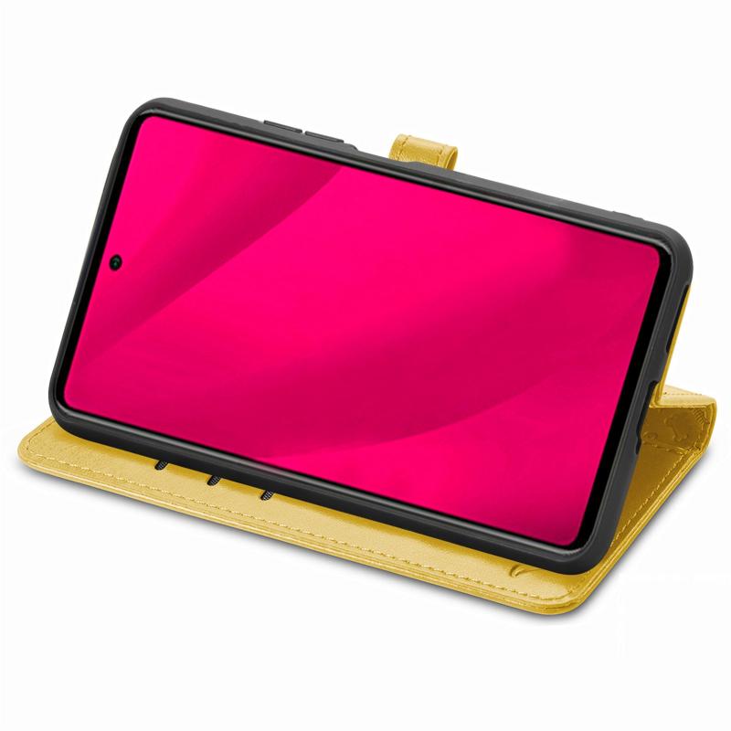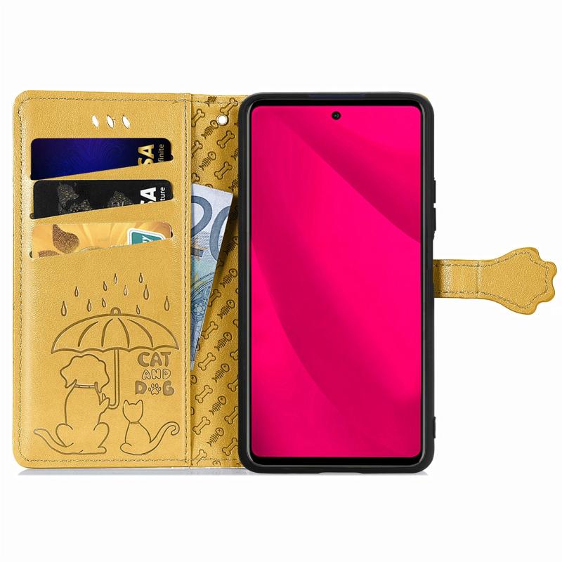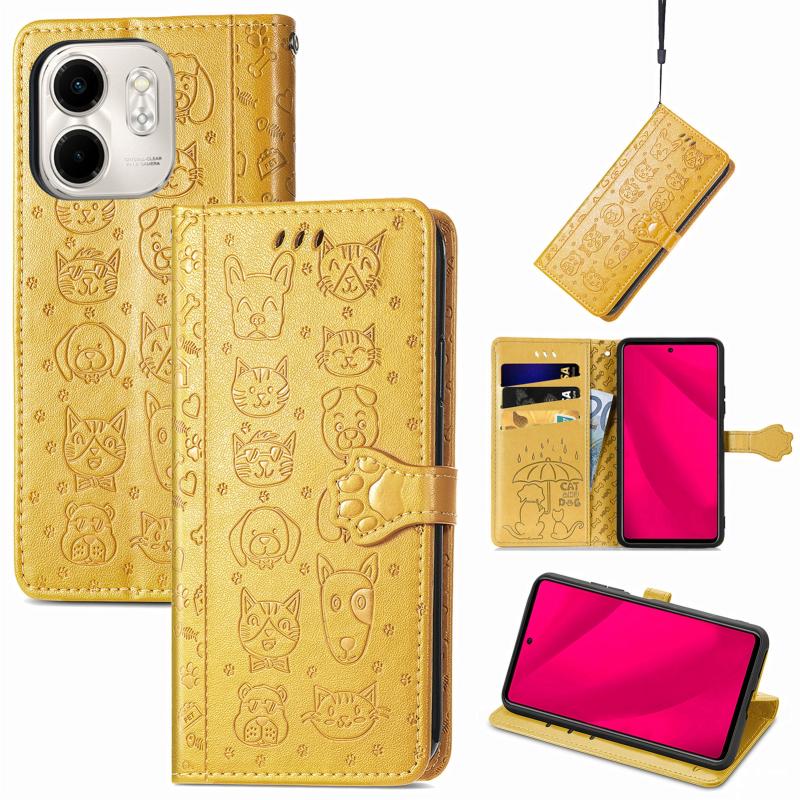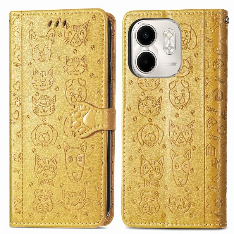 Θήκη Δερμάτινη με Χαρακτά Embossed Γάτας & Σκύλου για Infinix Smart 9 (Κίτρινο)
