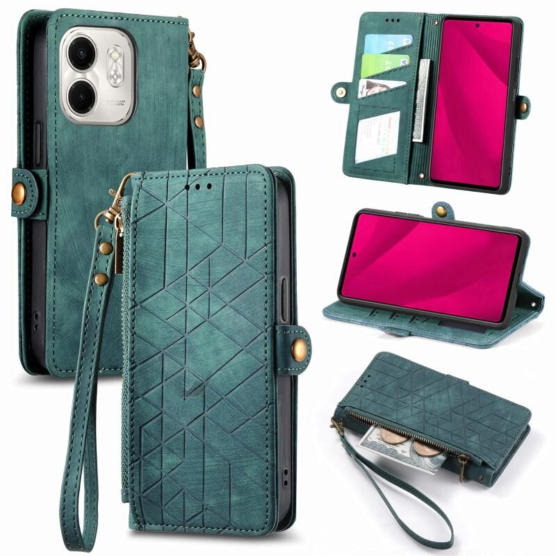 Για Infinix Smart 9 γεωμετρική φερμουάρ πορτοφόλι πλευρά πόρπη δερμάτινη θήκη τηλεφώνου (πράσινο)