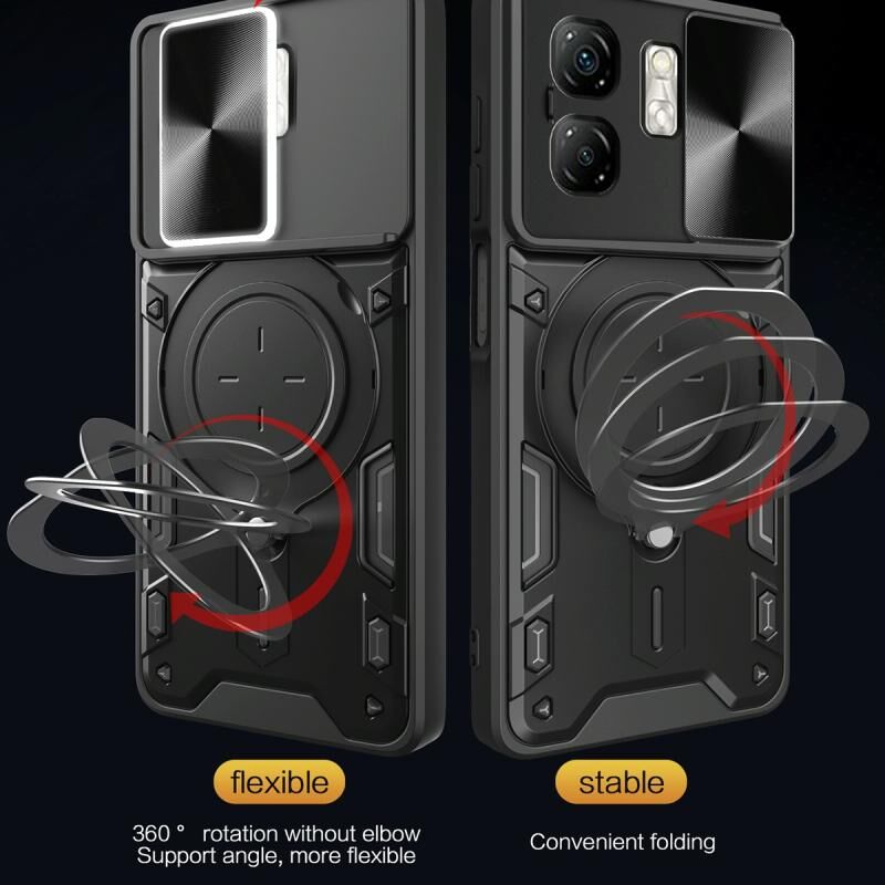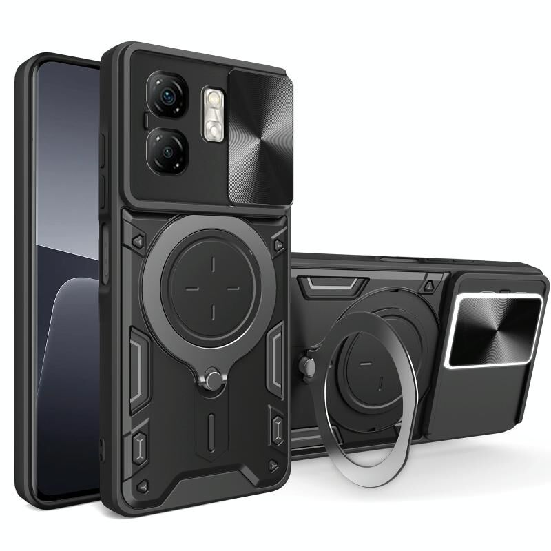 Θήκη τηλεφώνου με υφή CD, συρόμενο προστατευτικό κάμερας και μαγνητική βάση για Infinix Smart 9 / Hot 50i (Μαύρο)
