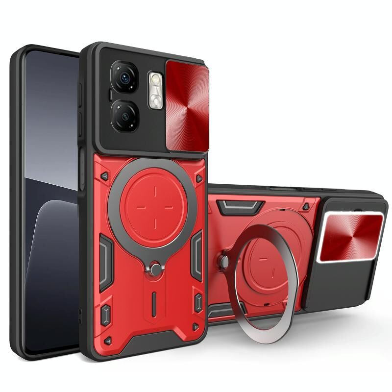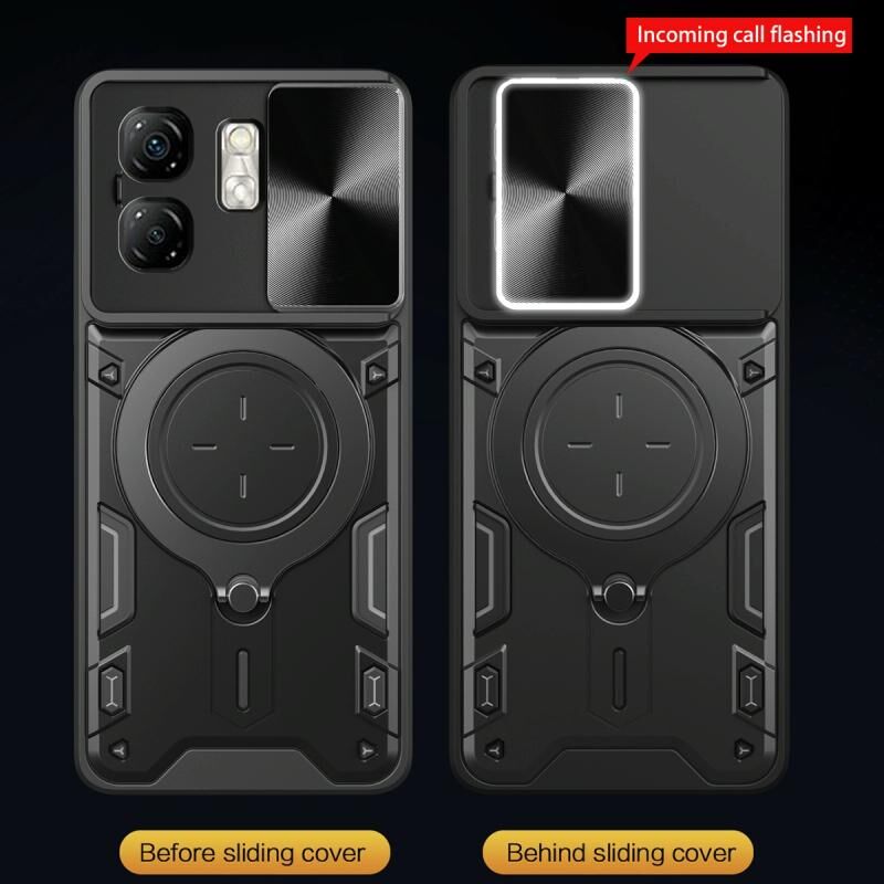 Θήκη τηλεφώνου με υφή CD, συρόμενο προστατευτικό κάμερας και μαγνητική βάση για Infinix Smart 9 / Hot 50i (Μαύρο)