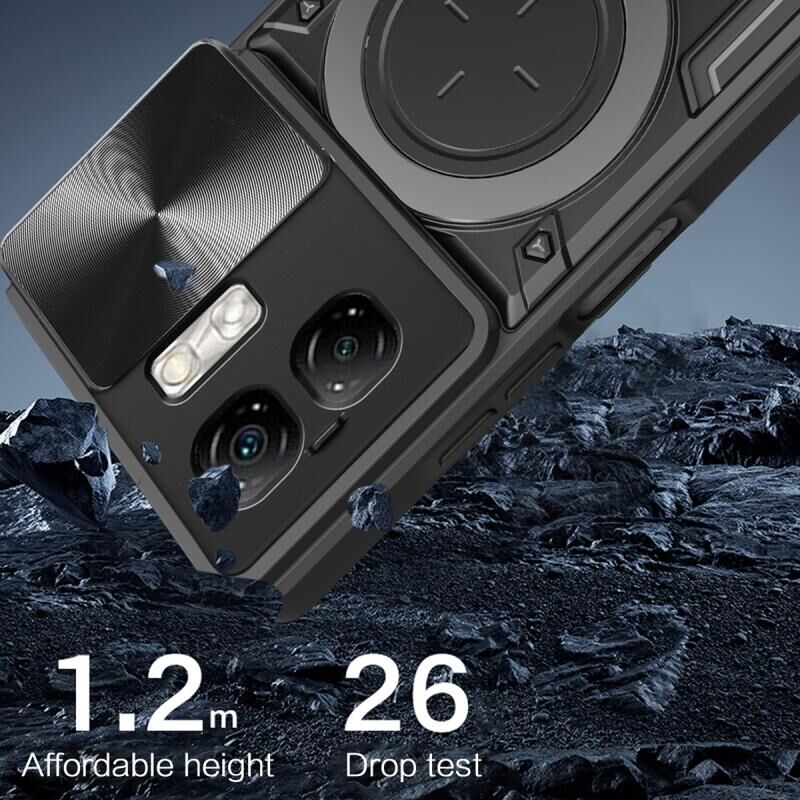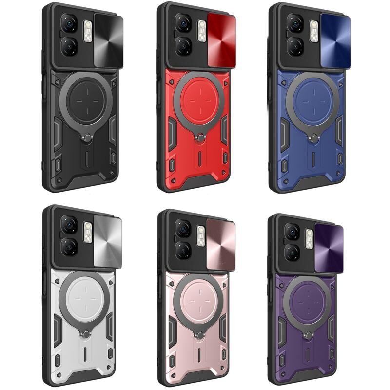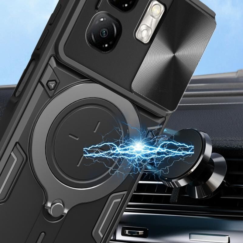 Θήκη τηλεφώνου με υφή CD, συρόμενο προστατευτικό κάμερας και μαγνητική βάση για Infinix Smart 9 / Hot 50i (Μαύρο)