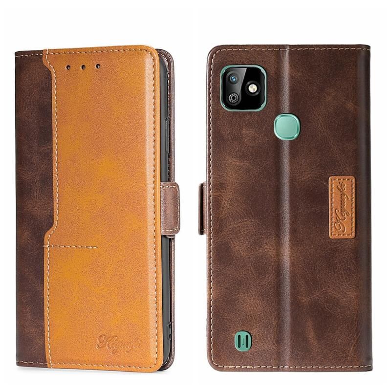 Για Infinix Smart HD 2021 X612 αντίθεση χρώμα πλευρά πόρπη δερμάτινη θήκη τηλεφώνου (σκούρο καφέ + χρυσό)