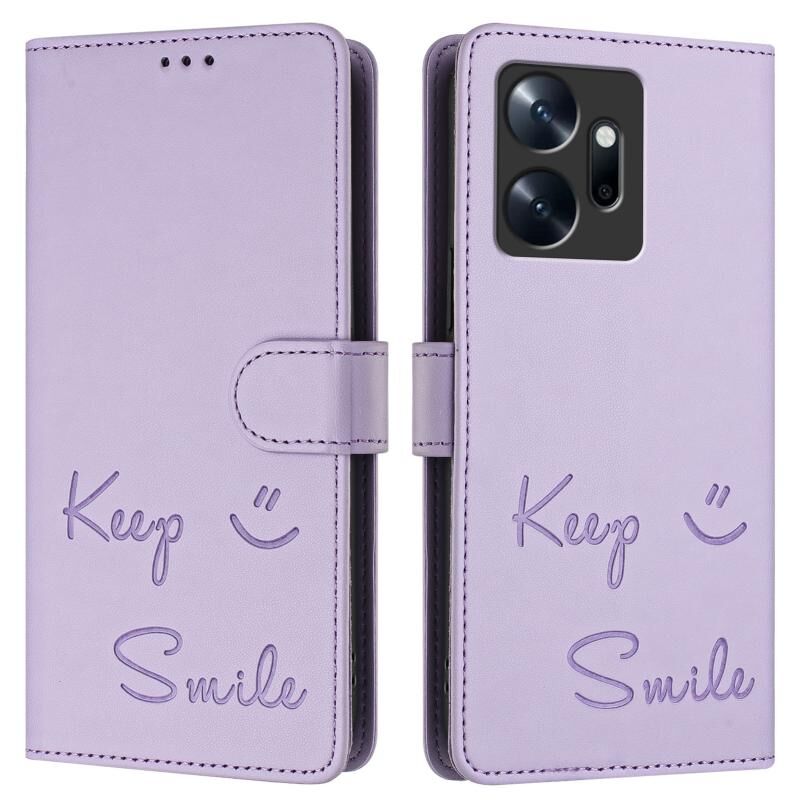 Για Infinix Zero 20 Χαμόγελο ανάγλυφο RFID δερμάτινη θήκη τηλεφώνου (Light Purple)