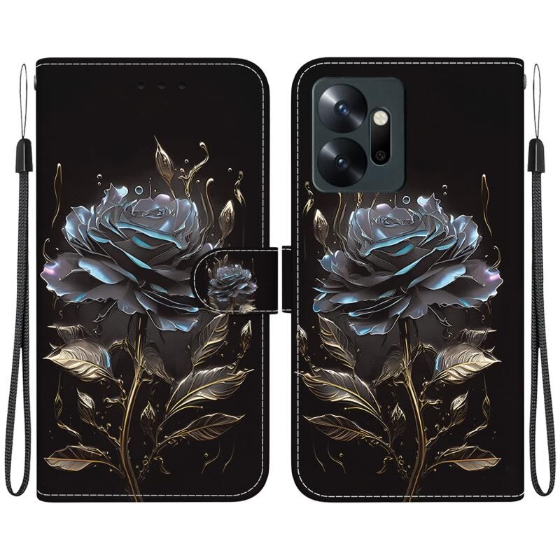For Infinix Zero 20 X6821 Crystal Texture Colored Drawing Leather Phone Case(Black Rose)