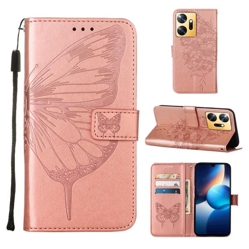 Θήκη τηλεφώνου από δέρμα με ανάγλυφο σχέδιο πεταλούδας για Infinix Zero 20 / X6821 (Μαύρο)