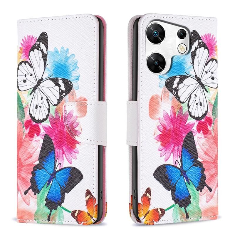 Θήκη τηλεφώνου από δέρμα με πολύχρωμο σχέδιο (πεταλούδες) για Infinix Zero 30 4G.