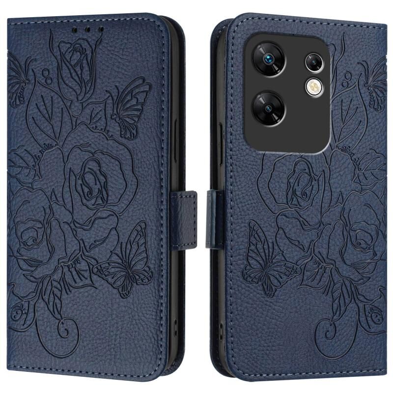Για Infinix Zero 30 4G ανάγλυφο Rose RFID Anti-theft δερμάτινη θήκη τηλεφώνου (σκούρο μπλε)