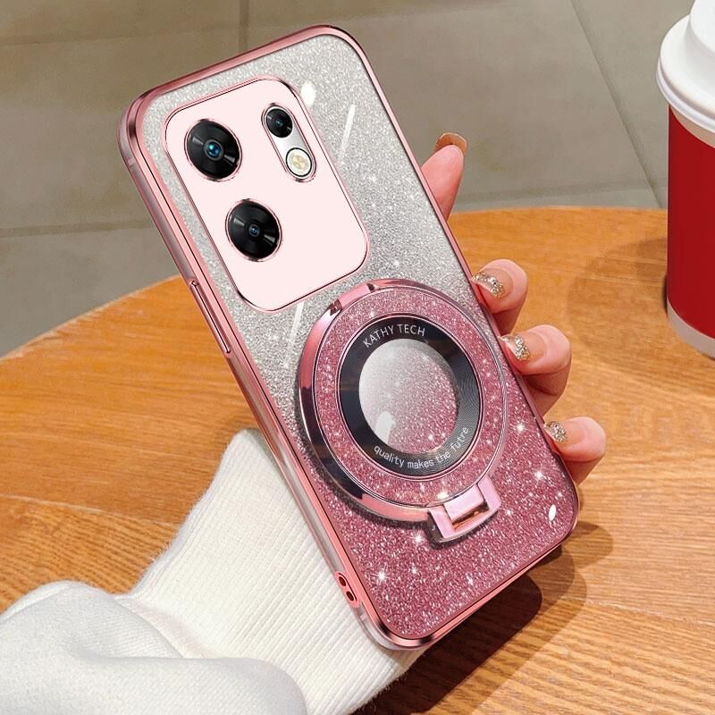 Για Infinix Zero 30 4G επιμεταλλωμένο διαβάθμιση Glitter στρογγυλή κάτοχος TPU τηλέφωνο υπόθεση (ροζ)