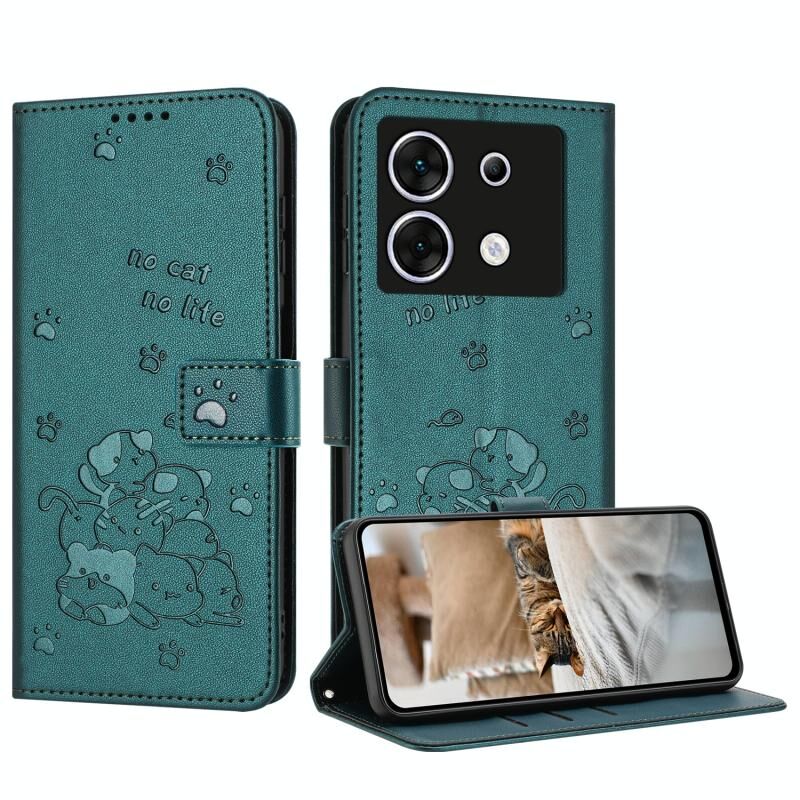 Θήκη δερμάτινη για Infinix Zero 30 5G με ανάγλυφο σχέδιο γατάκι και κορδόνι (Μωβ)