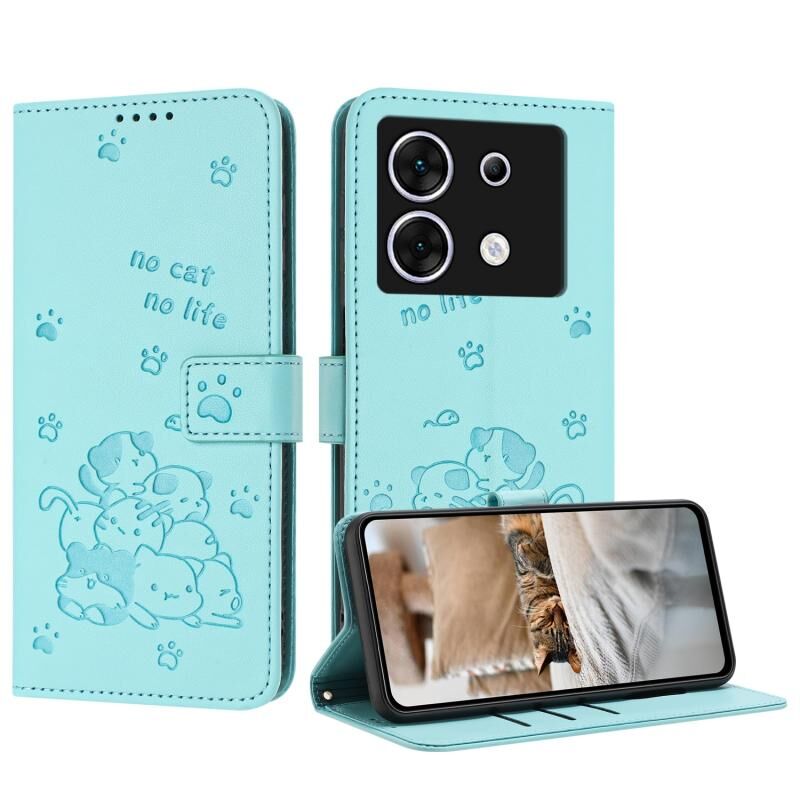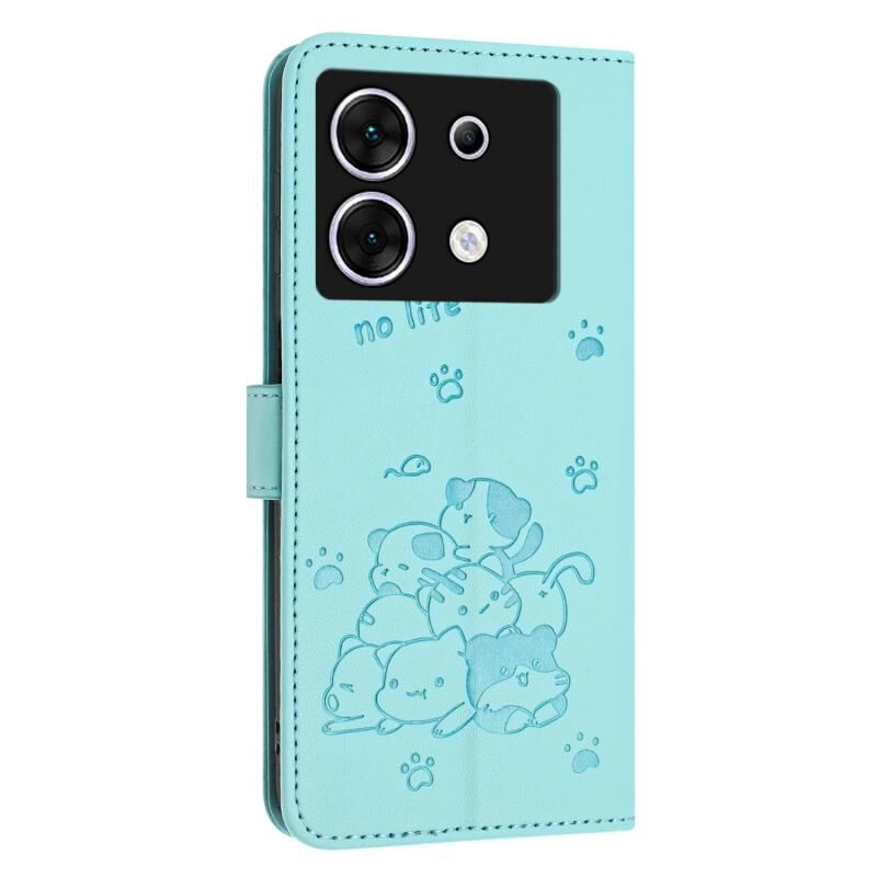 Θήκη δερμάτινη για Infinix Zero 30 5G με ανάγλυφο σχέδιο γατάκι και κορδόνι (Μωβ)