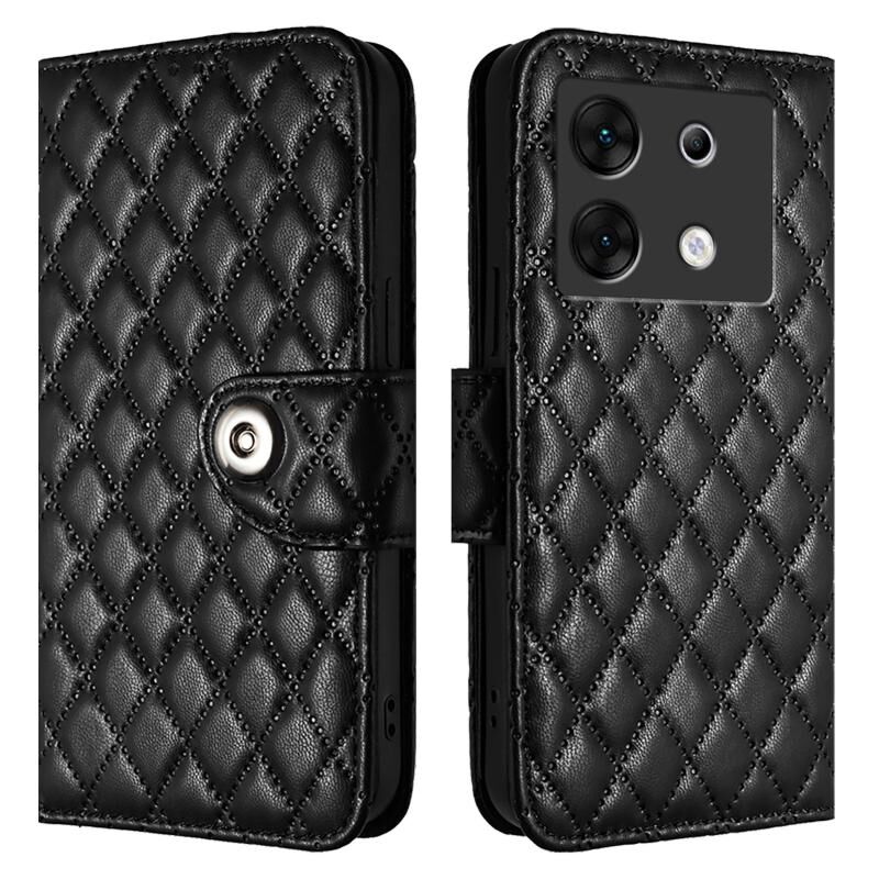 Για το Infinix Zero 30 5G Rhombic Texture Flip δερμάτινη θήκη τηλεφώνου με κορδόνι (μαύρο)