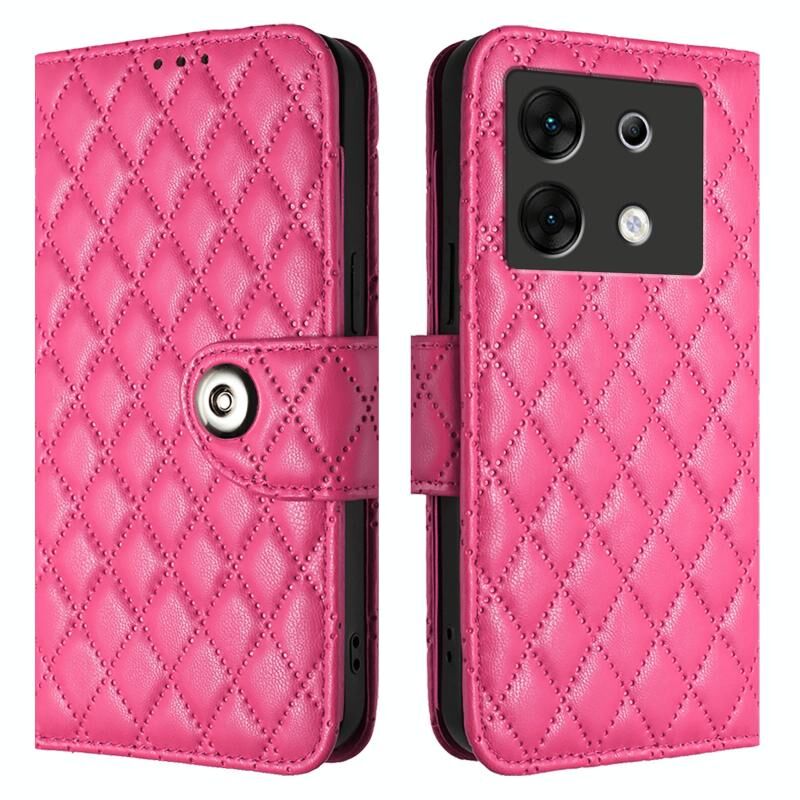 Για το Infinix Zero 30 5G Rhombic υφή Flip δερμάτινη θήκη τηλεφώνου με κορδόνι (Rose Red)