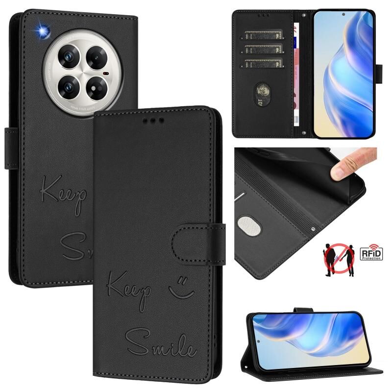 Για Infinix Zero 40 4G / 5G Χαμόγελο ανάγλυφο RFID δερμάτινη θήκη τηλεφώνου (Μαύρο)