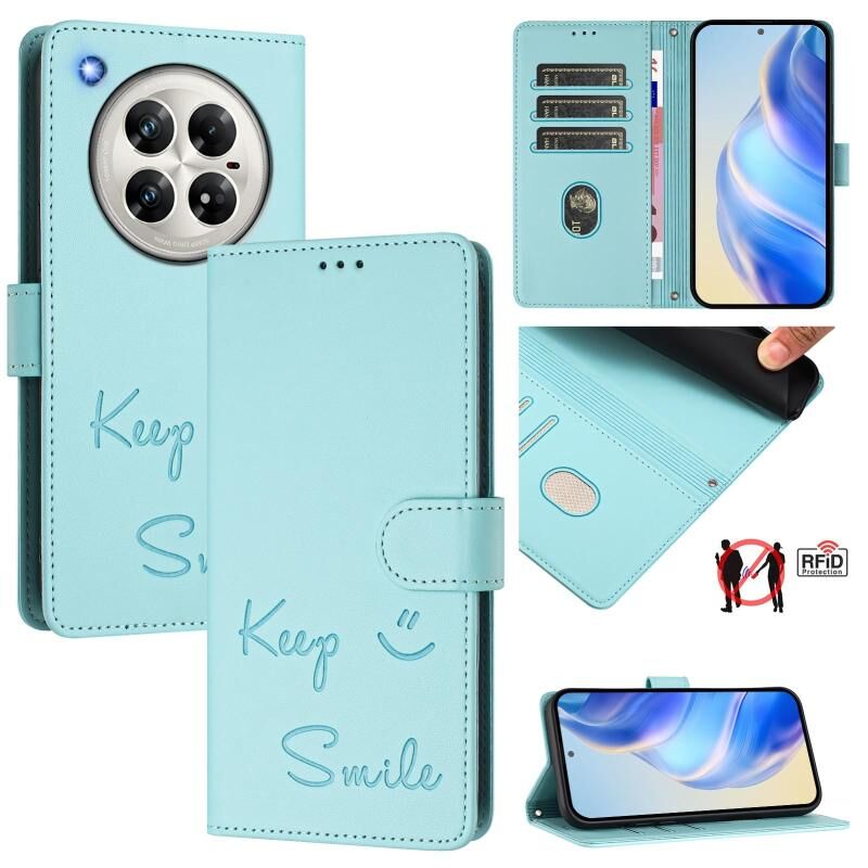 Για Infinix Zero 40 4G / 5G Χαμόγελο ανάγλυφο RFID δερμάτινη θήκη τηλεφώνου (πράσινο μέντα)