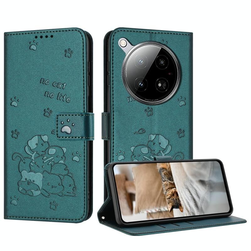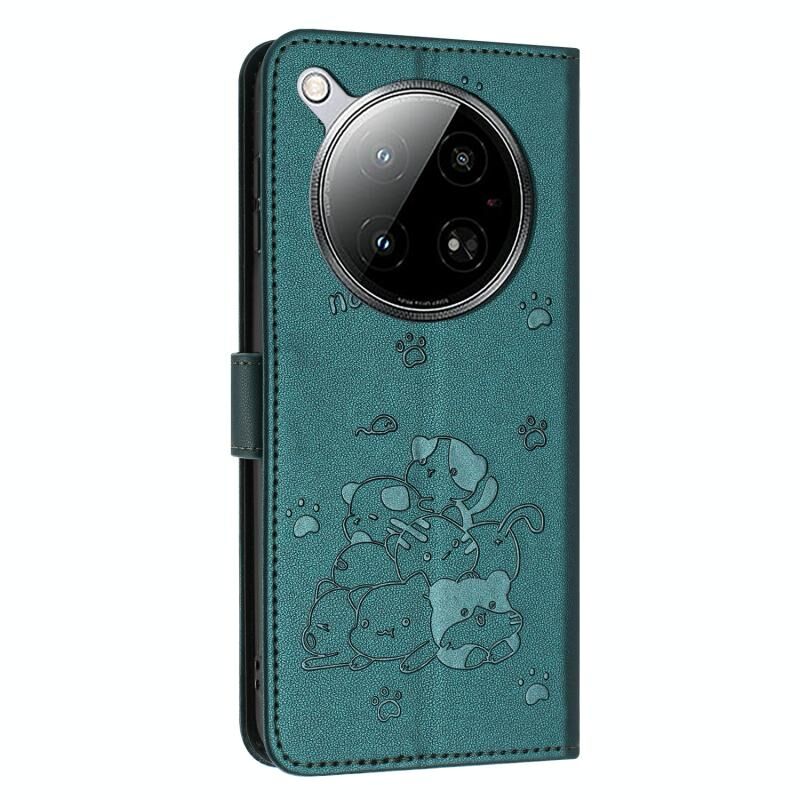 Θήκη δερμάτινη για Infinix Zero 40 4G / Zero 40 5G με ανάγλυφο σχέδιο γατάκι και κορδόνι (Μωβ)