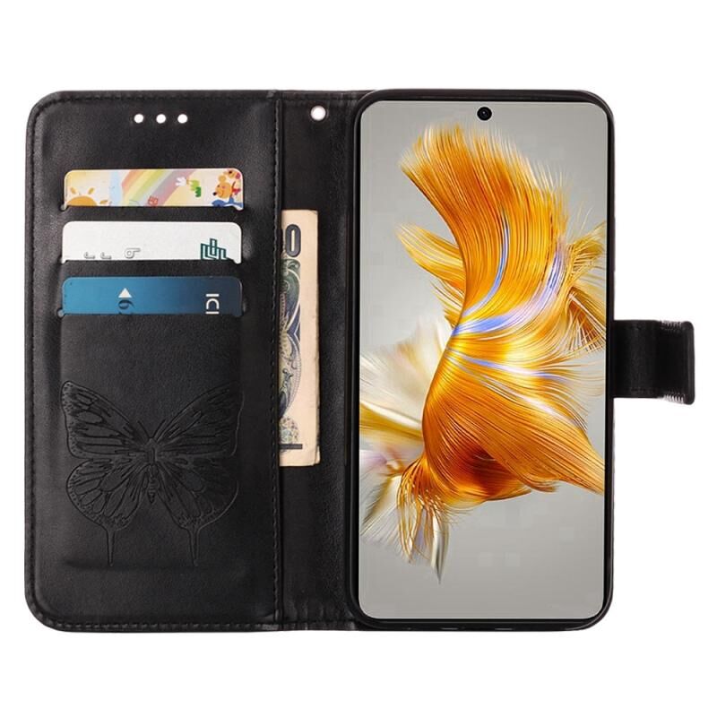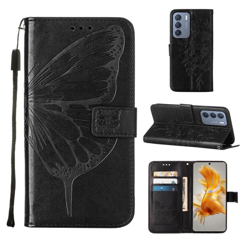 Θήκη τηλεφώνου από δέρμα με ανάγλυφο σχέδιο πεταλούδας για Infinix Zero 5G 2023 / T781 (Μαύρο)