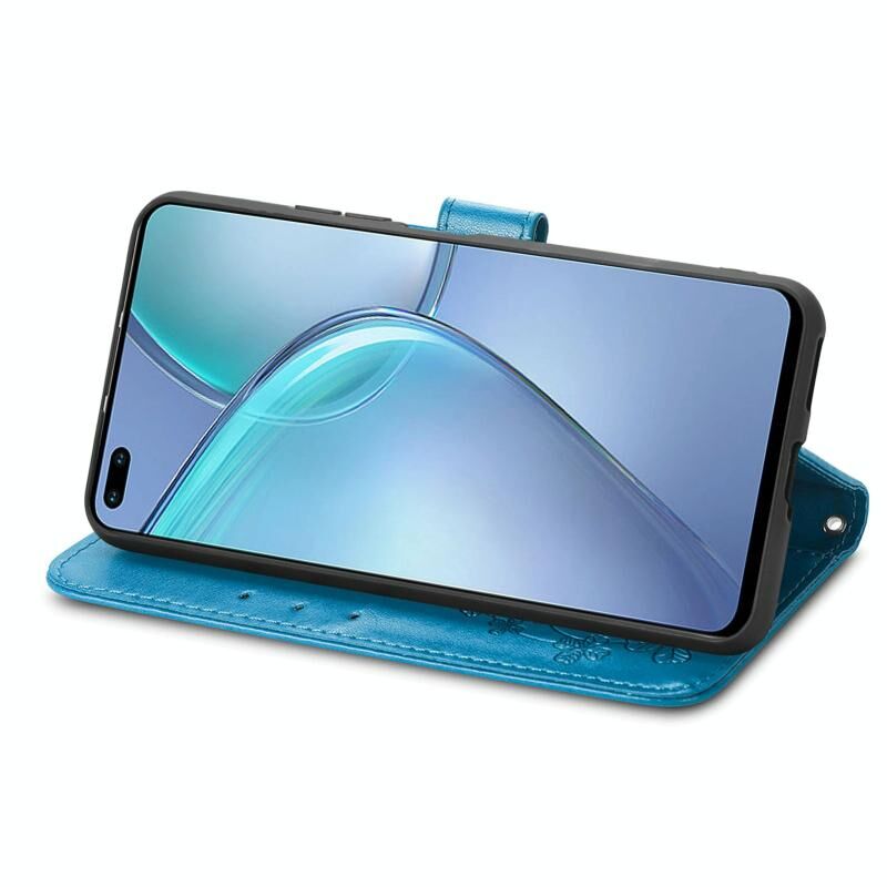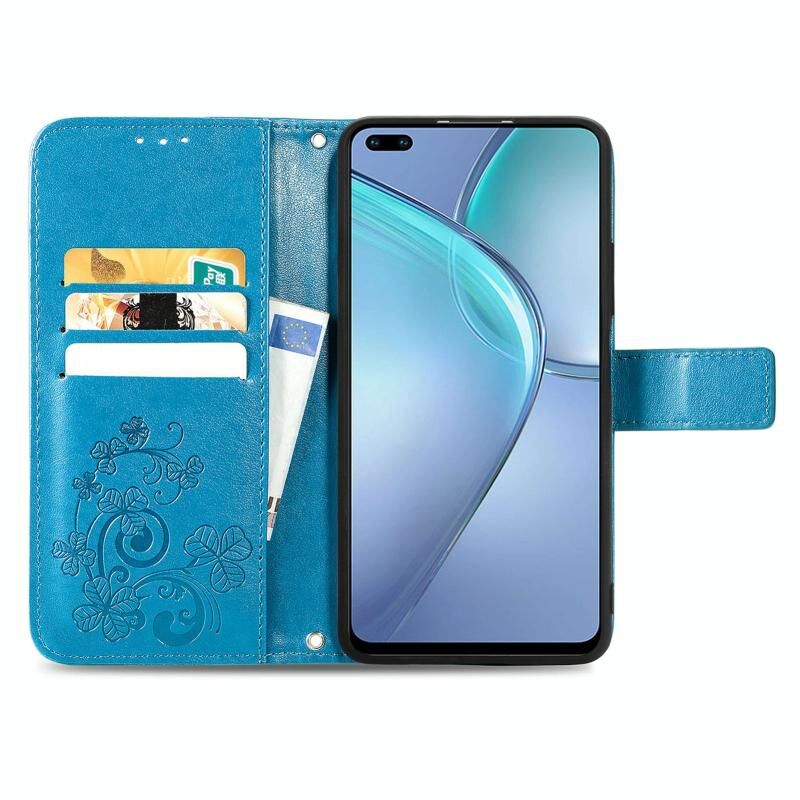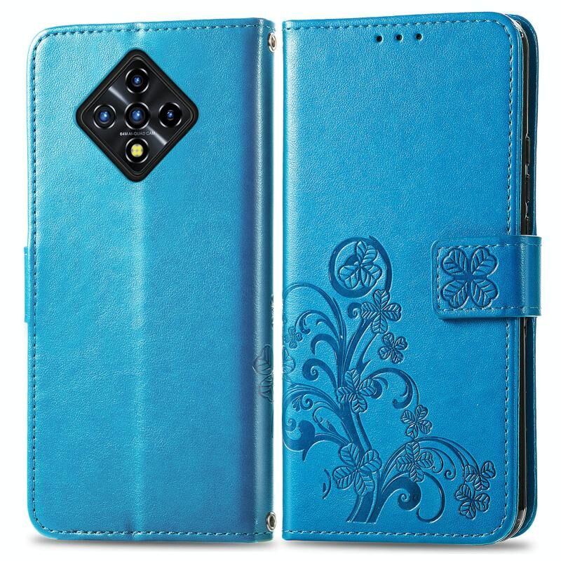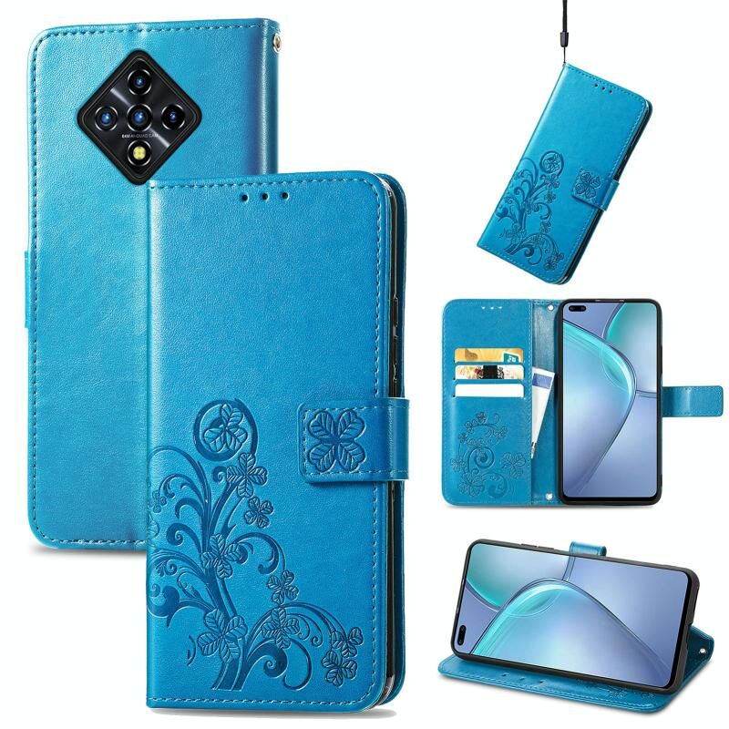 Για Infinix Zero 8 Four-leaf Clasp ανάγλυφη δερμάτινη θήκη με κορδόνι & υποδοχή για κάρτες & πορτοφόλι & θήκη (μπλε)