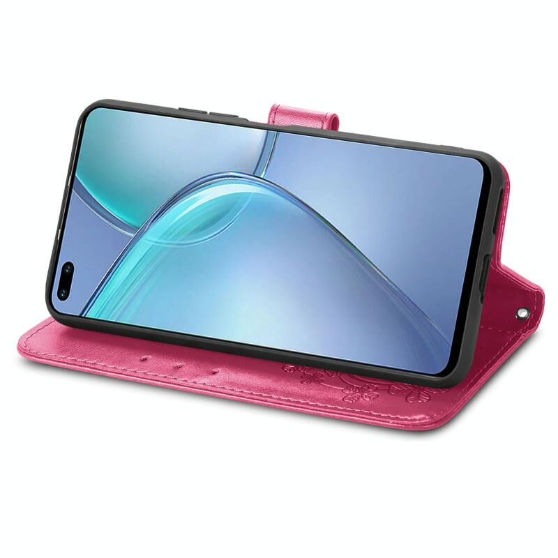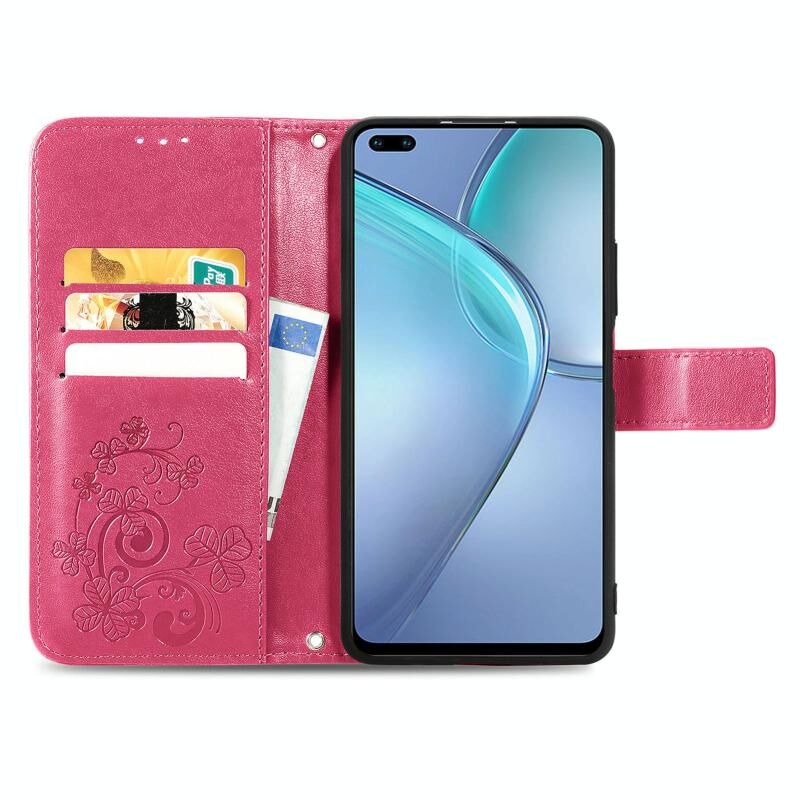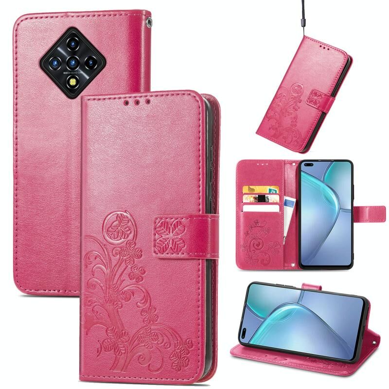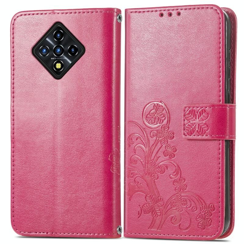 Για το Infinix Zero 8 Four-leaf Clasp ανάγλυφη δερμάτινη θήκη με κορδόνι & υποδοχή για κάρτες & πορτοφόλι & θήκη (Magenta)