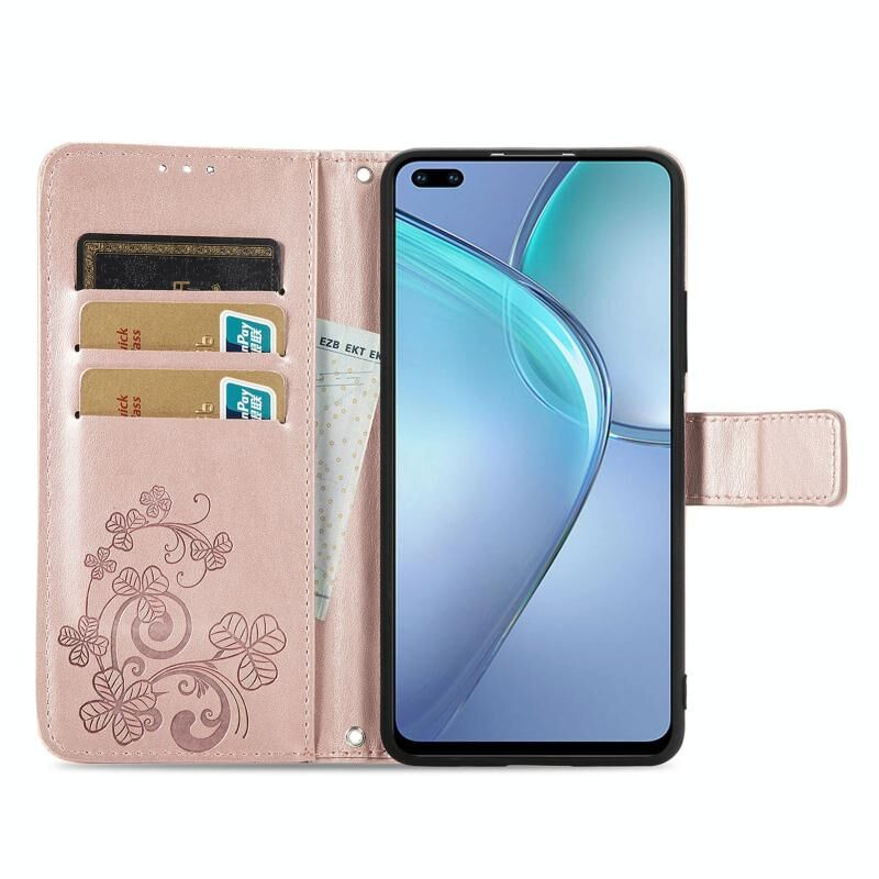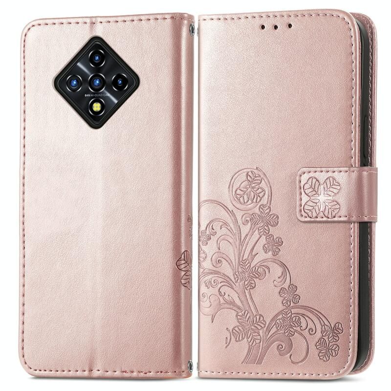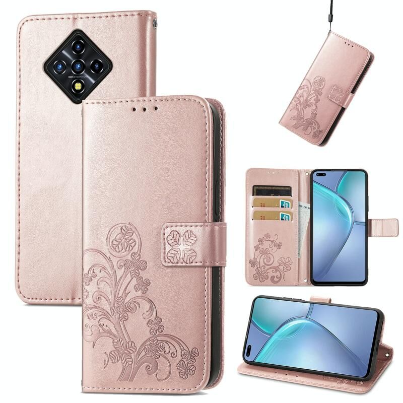 Για το Infinix Zero 8 Four-leaf Clasp ανάγλυφη δερμάτινη θήκη με κορδόνι & υποδοχή κάρτας & πορτοφόλι & κάτοχος (Rose Gold)