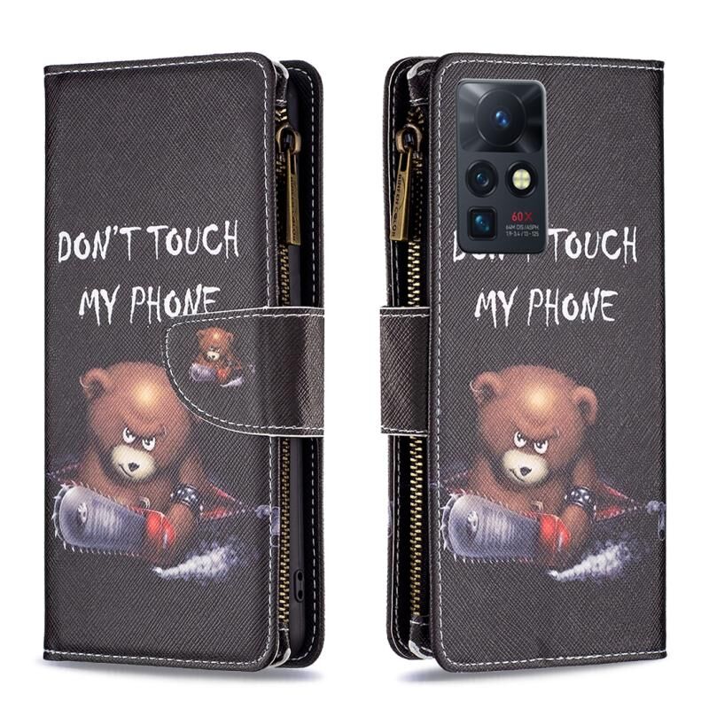 Θήκη τηλεφώνου δέρμα με οριζόντιο άνοιγμα και φερμουάρ, με έγχρωμο σχέδιο (αρκούδα) για Infinix Zero X / X Pro.