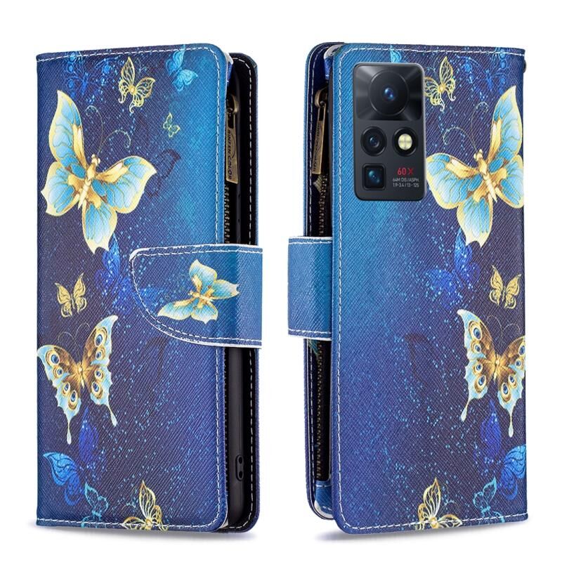 Θήκη τηλεφώνου δέρμα με οριζόντιο άνοιγμα και φερμουάρ, με έγχρωμο σχέδιο (πεταλούδα μωβ) για Infinix Zero X / X Pro.