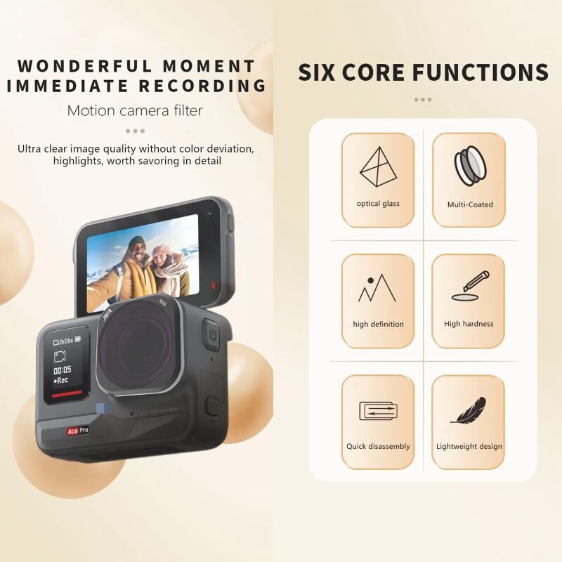 3. Φίλτρο ND: Μπορείτε να αποκτήσετε περισσότερη ελευθερία να ελέγξετε το διάφραγμα και τον χρόνο έκθεσης, να φέρετε περισσότερες μεθόδους έκθεσης και δημιουργικό χώρο για τη δημιουργία φωτογραφιών και να αποτρέψετε αποτελεσματικά την υπερέκθεση. Ο αριθμός πίσω από το ND αντιπροσωπεύει την ικανότητα του καθρέφτη ND να μπλοκάρει το φως.
