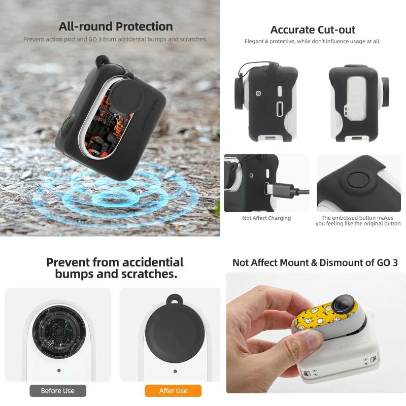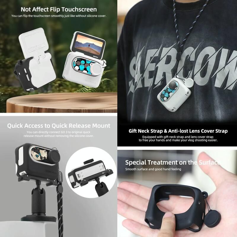 5. Equipped with neck strap + lens cover anti-lost rope. The neck strap frees your hands; the lens cap anti-lost strap makes shooting with GO 3 more carefree.