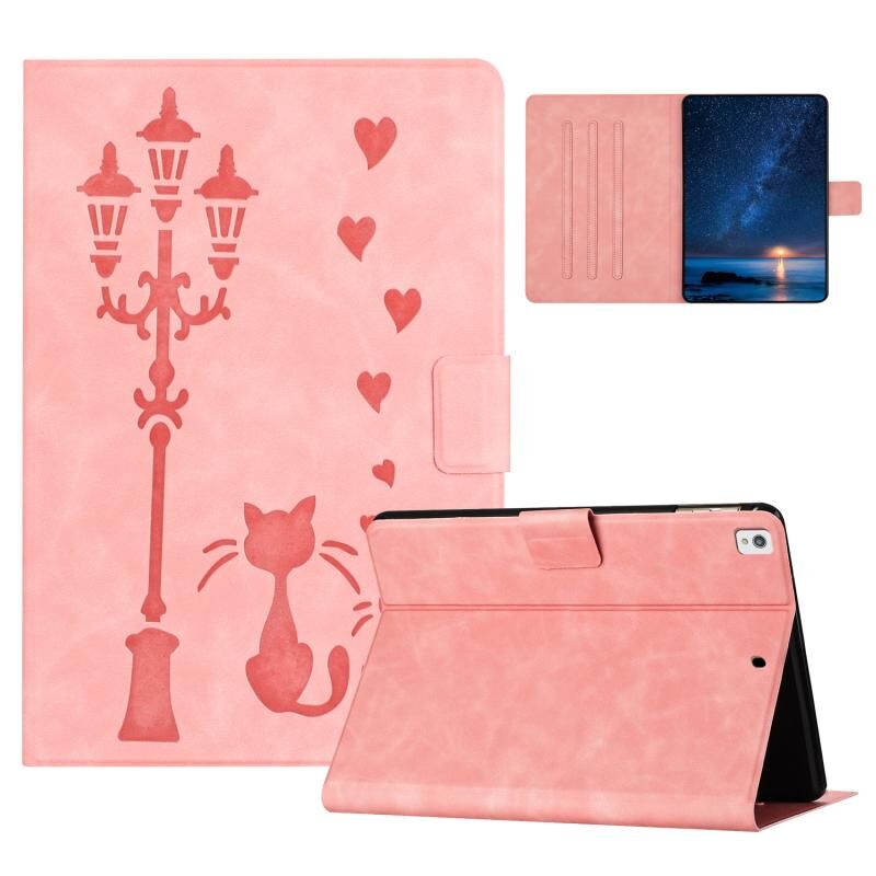 For iPad 10.2 2021 / 2020 / 10.5 2019 Embossed Couple Cat Smart Tablet Leather Case(Pink)