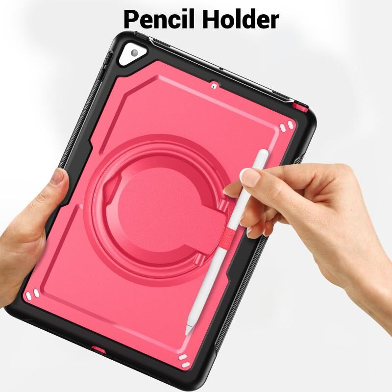 For iPad 10.2 2021 / 2020 / 10.5 2019 Honeycomb Hybrid Tablet Case with Handle Holder & Strap(Rose Red)