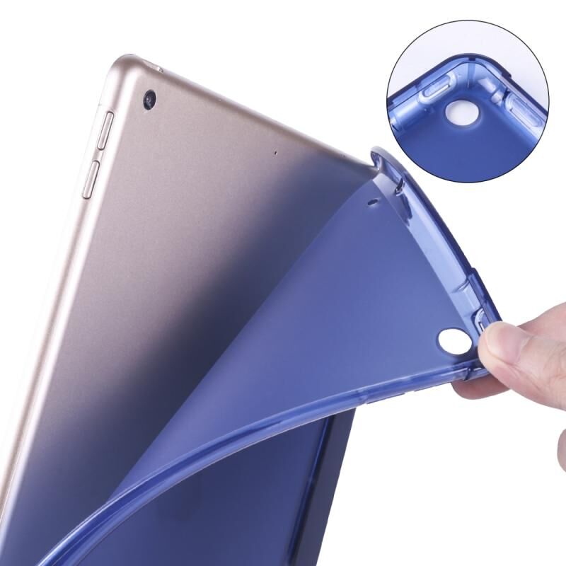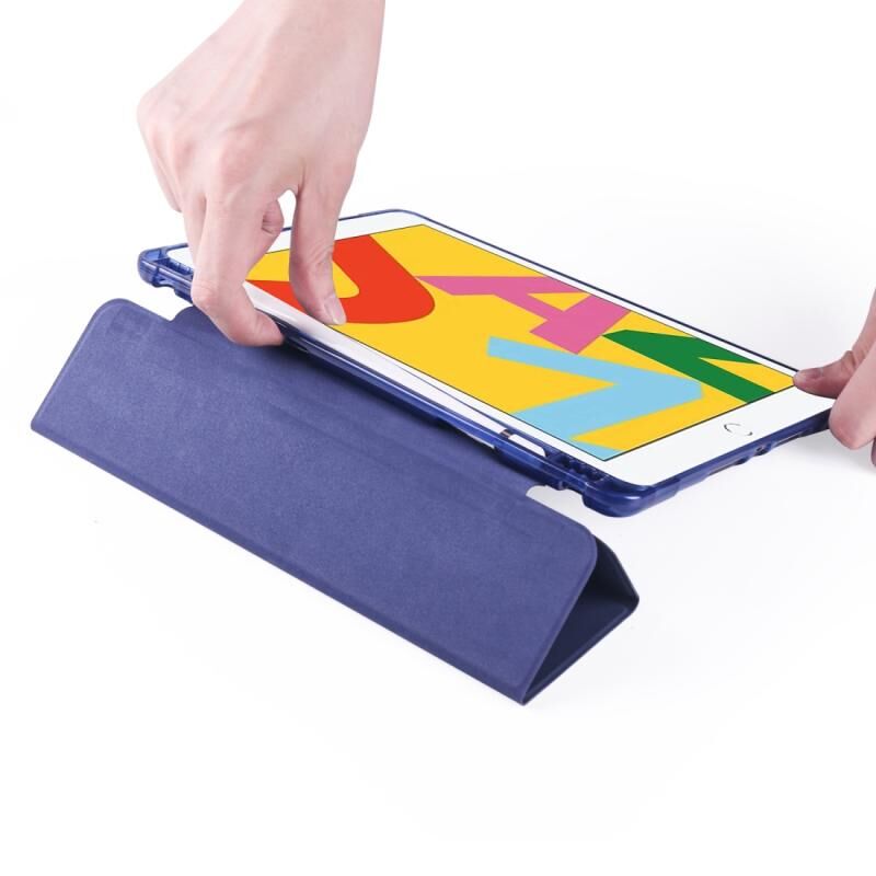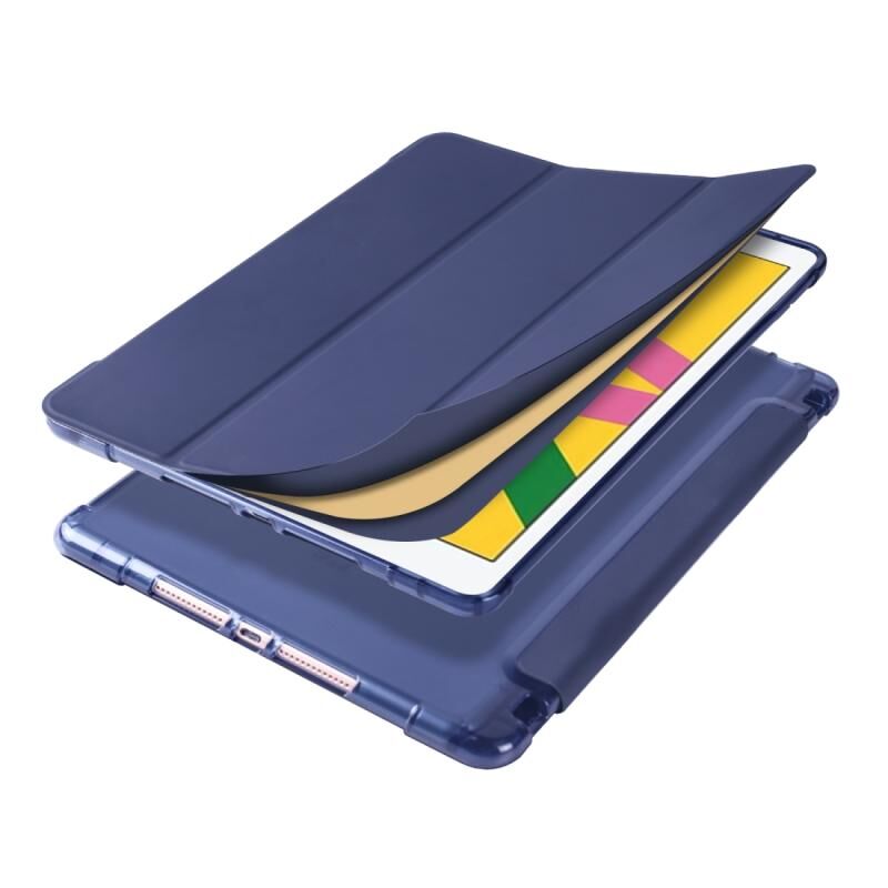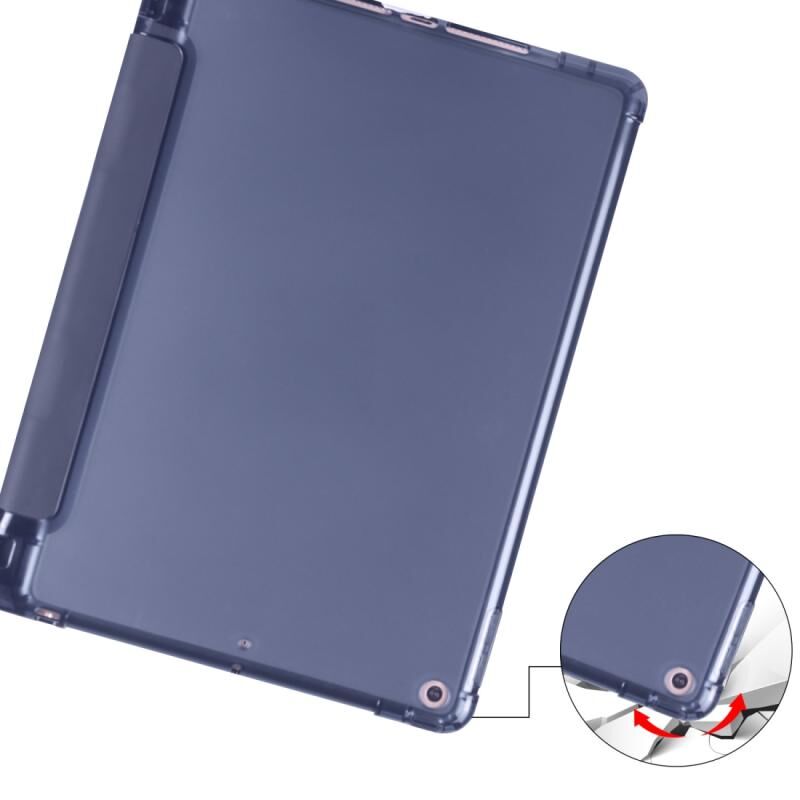 For iPad 10.2 2021 / 2020 / 2019 3-folding Horizontal Flip PU Leather + Shockproof TPU Case with Holder & Pen Slot(Dark Blue)