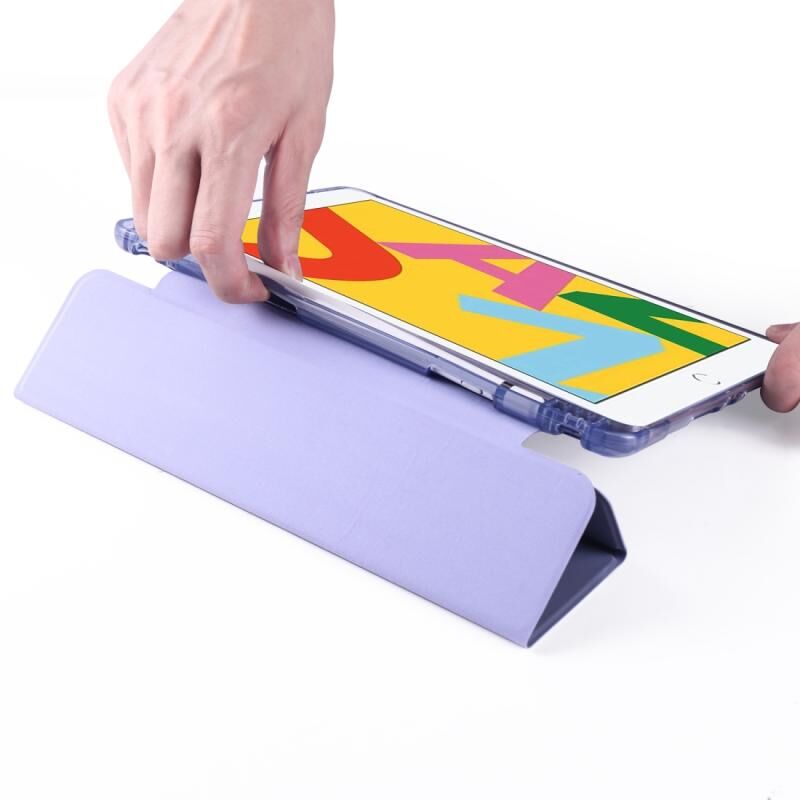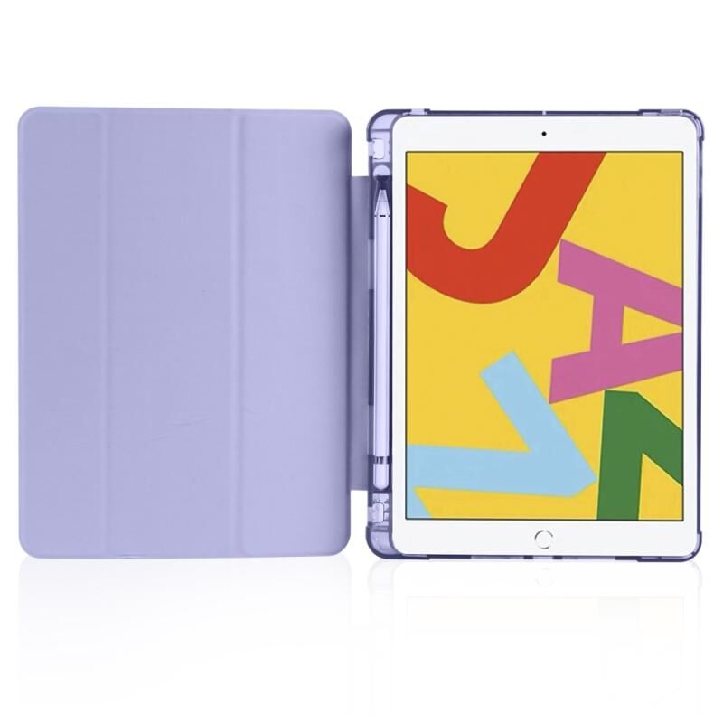 For iPad 10.2 2021 / 2020 / 2019 3-folding Horizontal Flip PU Leather + Shockproof TPU Case with Holder & Pen Slot(Lavender Purple)