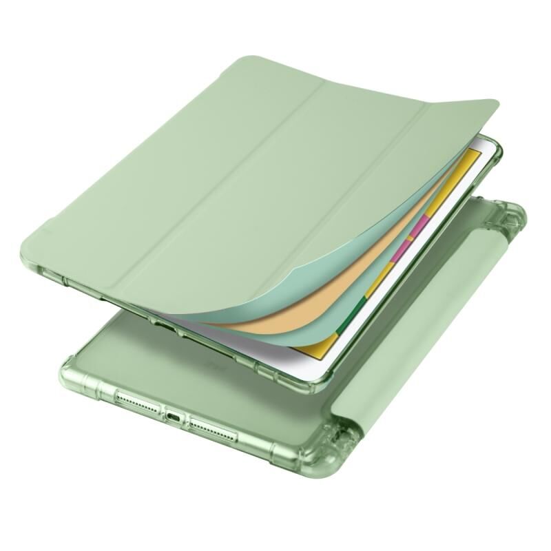 For iPad 10.2 2021 / 2020 / 2019 3-folding Horizontal Flip PU Leather + Shockproof TPU Case with Holder & Pen Slot(Matcha Green)
