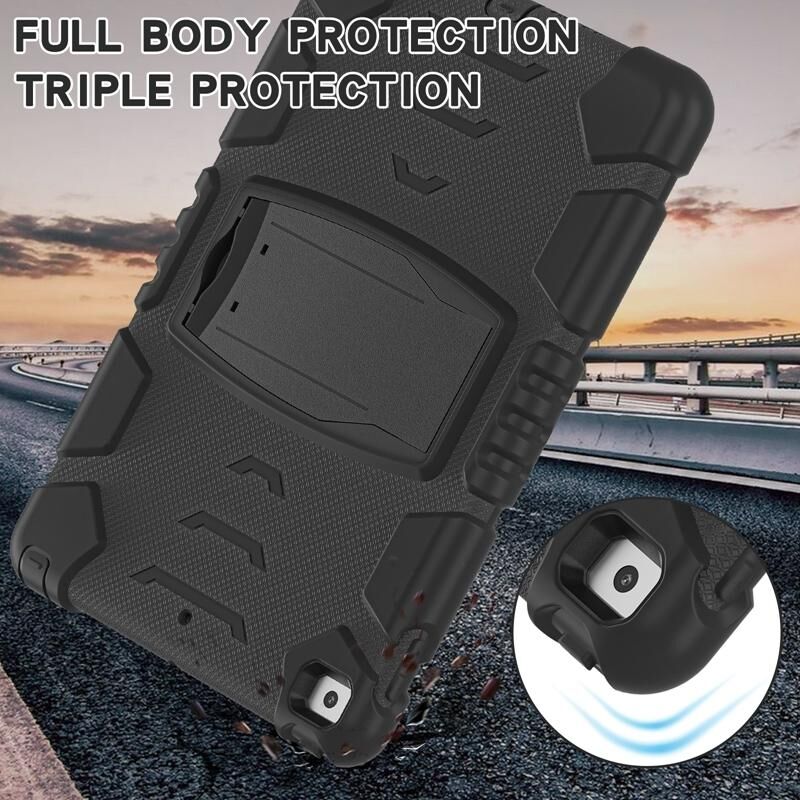 For iPad 10.2 2021 / 2020 / 2019 3-Layer Protection Screen Frame + PC + Silicone Shockproof Combination Case with Holder(Black+Black)