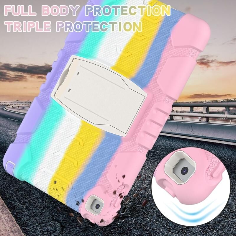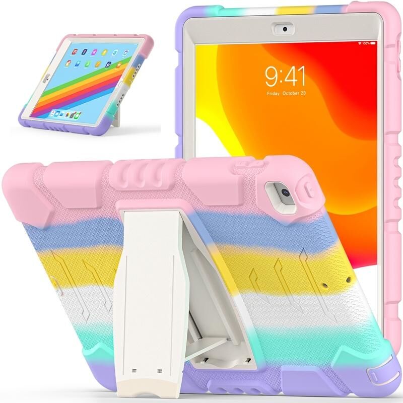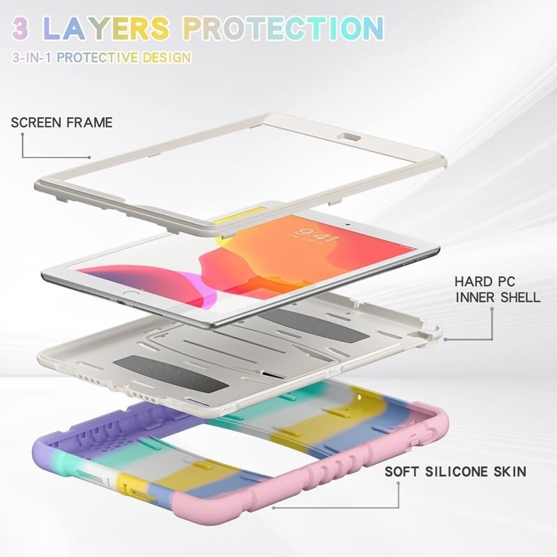 For iPad 10.2 2021 / 2020 / 2019 3-Layer Protection Screen Frame + PC + Silicone Shockproof Combination Case with Holder(Colorful Pink)