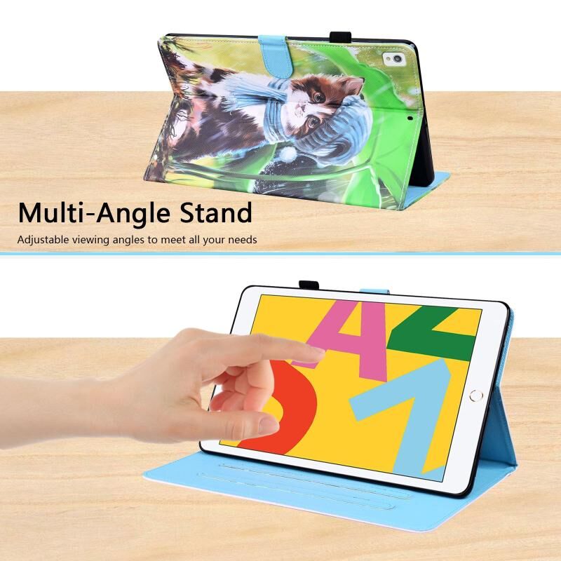 Για iPad 10.2 2021 / 2020 / 2019 Θήκη Δέρματος Οριζόντιας Αναδίπλωσης με Σχέδια Ζώων με Στήριξη & Θήκες Καρτών & Φωτογραφική Κορνίζα & Λειτουργία Αφύπνισης / Ύπνου (Γατάκι με Σαλιάρα)