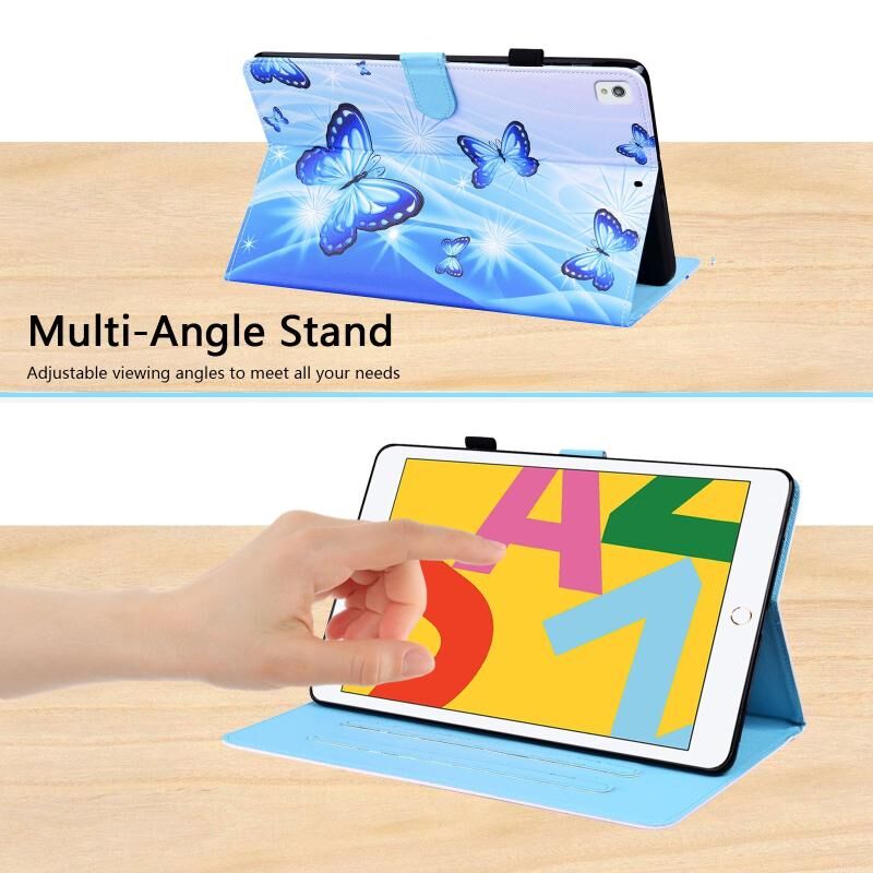 Για iPad 10.2 2021 / 2020 / 2019 Θήκη Δέρματος Οριζόντιας Αναδίπλωσης με Σχέδια Ζώων με Στήριξη & Θήκες Καρτών & Φωτοκορνίσα & Λειτουργία Αφύπνισης / Ύπνου (Μπλε Πεταλούδα)