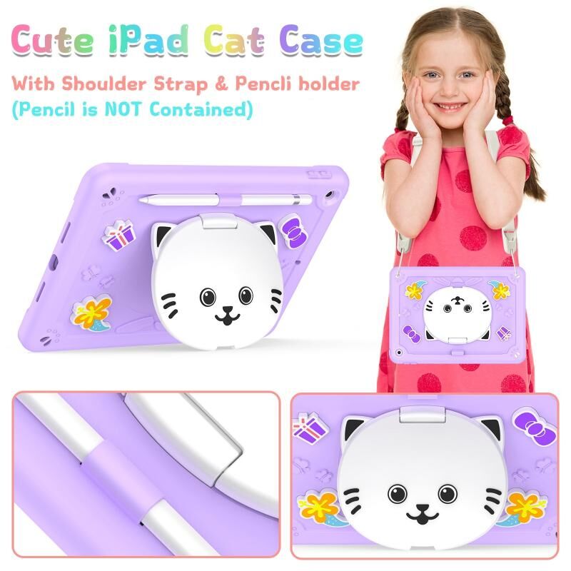 Θήκη ταμπλέτας υβριδική από σιλικόνη και PC με λουρί για iPad 10.2 2021 / 2020 / 2019, σχέδιο γάτας (Γαλάζιο του ουρανού)