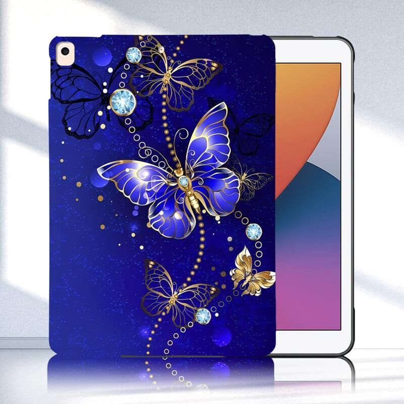 For iPad 10.2 2021 / 2020 / 2019 Color Painting Pattern Smart Tablet TPU Case(Blue Butterfly)
