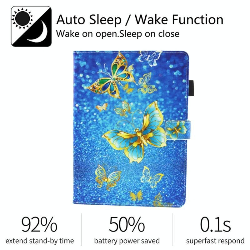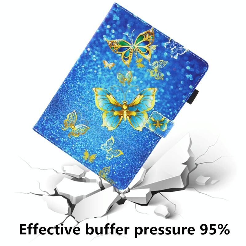 For iPad 10.2 2021 / 2020 / 2019 Coloured Drawing Pattern Horizontal Flip Leather Case with Holder & Card Slots & Photo Frame(Gold Butterfly)