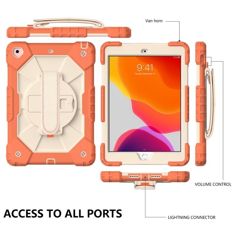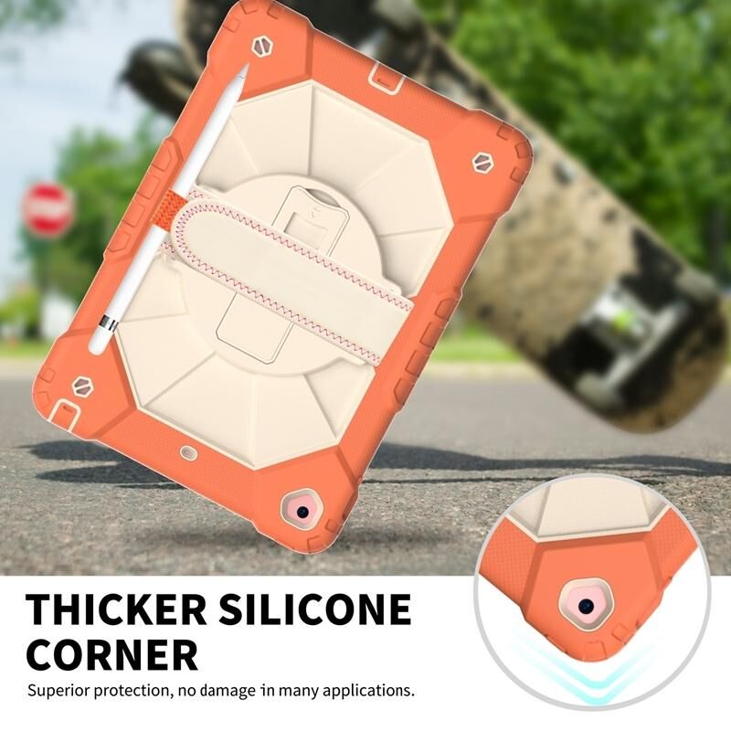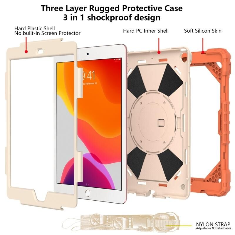 Για iPad 10.2 2021 / 2020 / 2019 Προστατευτική θήκη από σιλικόνη + PC με αντιολισθητικό ρομποτικό σχέδιο και ενσωματωμένη βάση & λουρί ώμου (Πολύχρωμο Κόκκινο Μπεζ)
