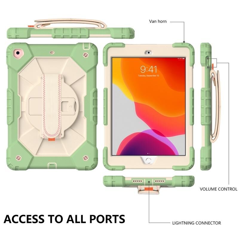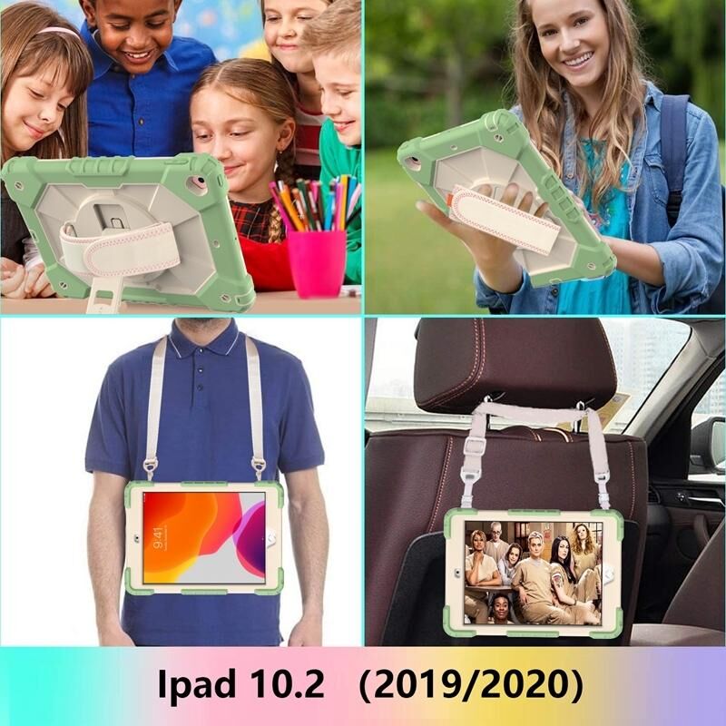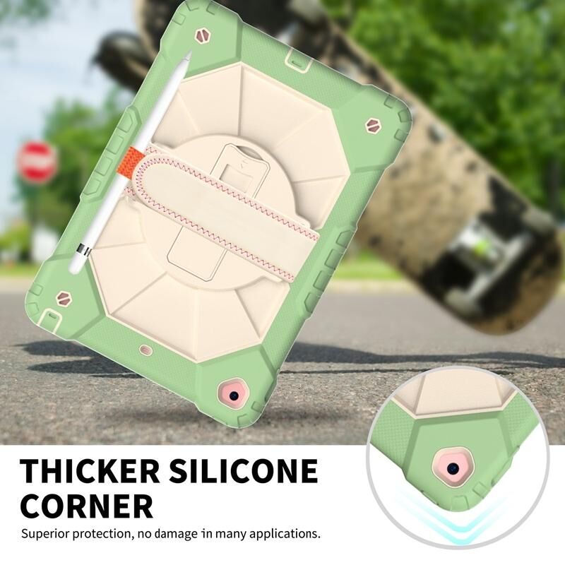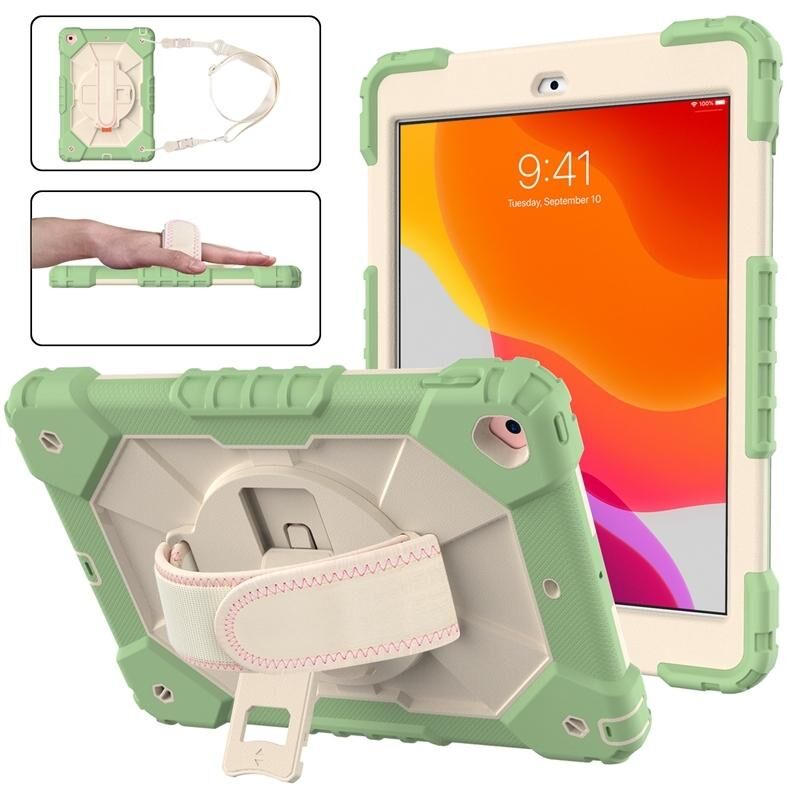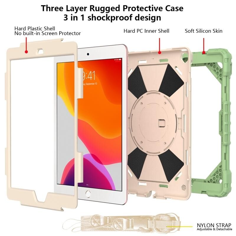 Για iPad 10.2 2021 / 2020 / 2019 Προστατευτική θήκη από σιλικόνη + PC με αντιολισθητικό ρομποτικό σχέδιο και ενσωματωμένη βάση & λουρί ώμου (Πολύχρωμο Κόκκινο Μπεζ)