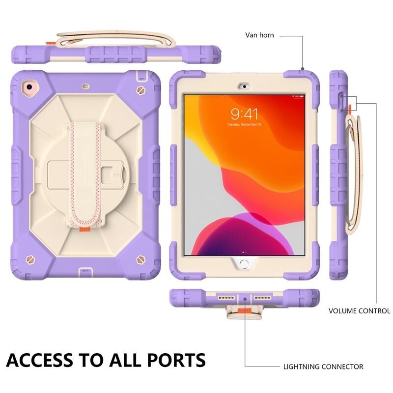 Για iPad 10.2 2021 / 2020 / 2019 Προστατευτική θήκη από σιλικόνη + PC με αντιολισθητικό ρομποτικό σχέδιο και ενσωματωμένη βάση & λουρί ώμου (Πολύχρωμο Κόκκινο Μπεζ)