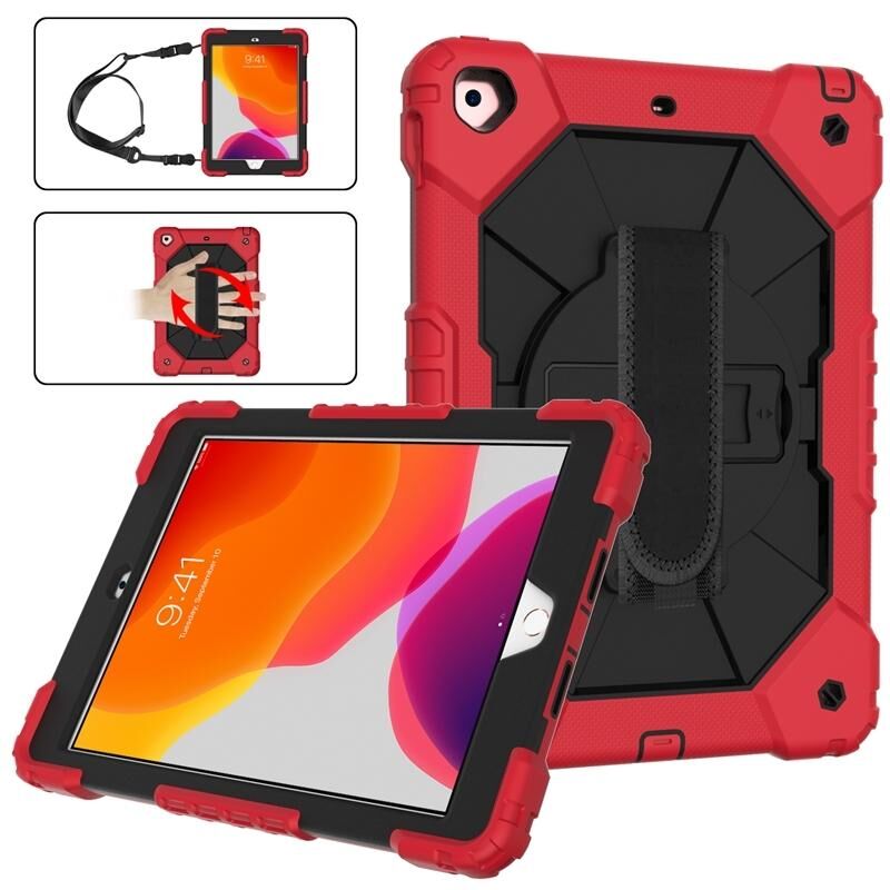 For iPad 10.2 2021 / 2020 / 2019 Contrast Color Robot Shockproof Silicon + PC Protective Case with Holder & Shoulder Strap(Red Black)