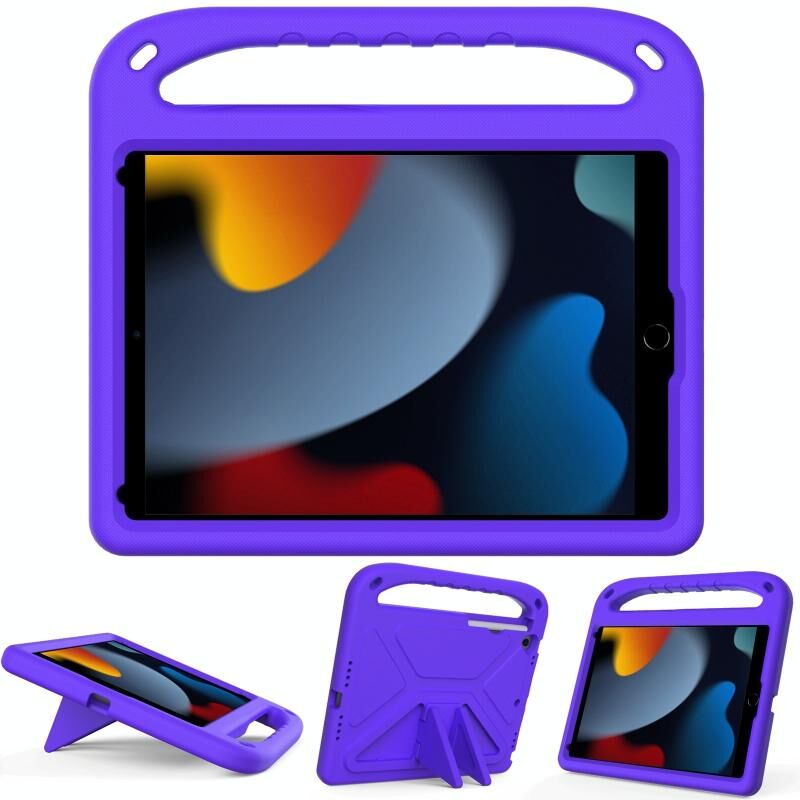 For iPad 10.2 2021 / 2020 / 2019 Handle Portable EVA Shockproof Protective Case with Triangle Holder(Purple)