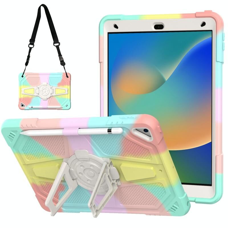 Θήκη ταμπλέτας υβριδική από PC και σιλικόνη με λουρί ώμου για iPad 10.2 2021 / 2020 / 2019 (Πολύχρωμη)