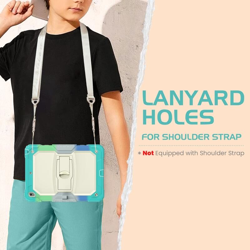 Για iPad 10.2 2021 / 2020 / 2019 ανθεκτική θήκη προστασίας από σιλικόνη και PC με βάση στήριξης & λουρί ώμου (Μαύρο)