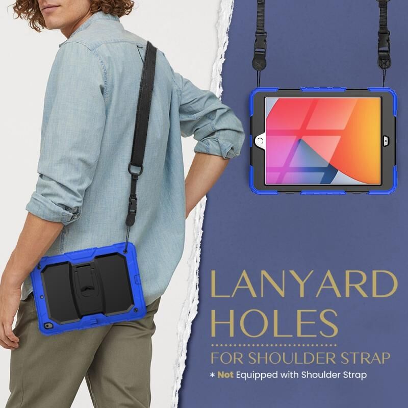 Για iPad 10.2 2021 / 2020 / 2019 ανθεκτική θήκη προστασίας από σιλικόνη και PC με βάση στήριξης & λουρί ώμου (Μαύρο)