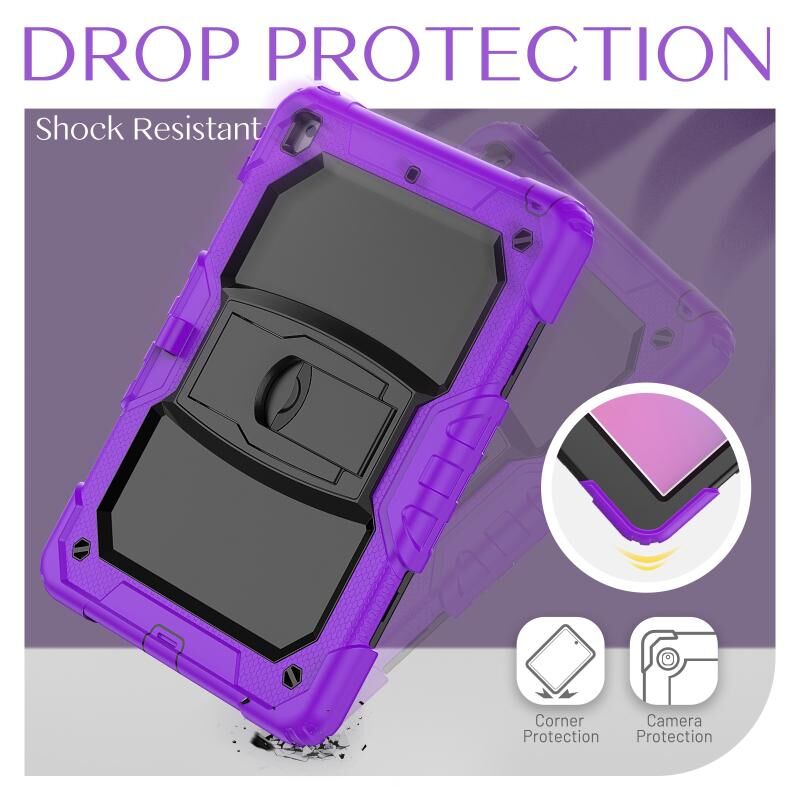 Για iPad 10.2 2021 / 2020 / 2019 ανθεκτική θήκη προστασίας από σιλικόνη και PC με βάση στήριξης & λουρί ώμου (Μαύρο)