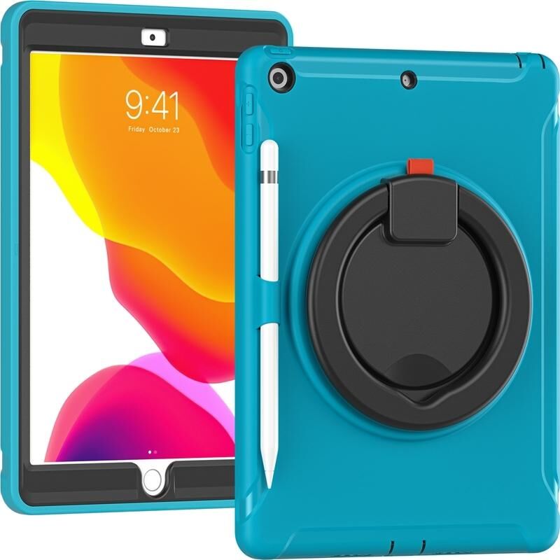 Για iPad 10.2 2021 / 2020 / 2019 ανθεκτική θήκη προστασίας TPU + PC με περιστρεφόμενη λαβή στήριξης 360 μοιρών & υποδοχή για στυλό (Μαύρο)