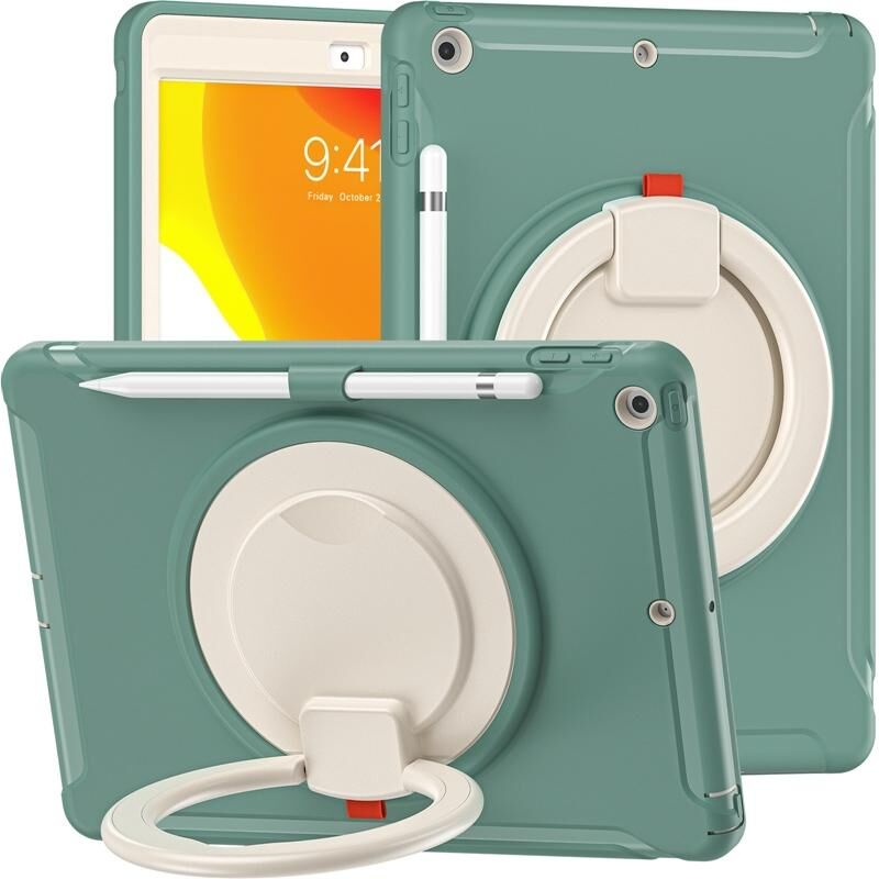 Για iPad 10.2 2021 / 2020 / 2019 ανθεκτική θήκη προστασίας TPU + PC με περιστρεφόμενη λαβή στήριξης 360 μοιρών & υποδοχή για στυλό (Μαύρο)